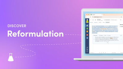 Reformulation mode intelligently reworks your writing while remaining true to your ideas. Need to shorten a text, soften its tone or touch it up a bit? Just choose the reformulation type that best suits your needs: Rewrite, Retouch, Soften or Shorten.