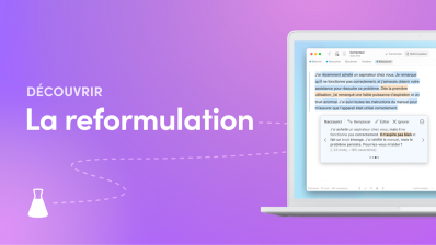 Le mode Reformulation propose des solutions de réécriture ingénieuses et fidèles à vos idées pour améliorer vos écrits. Vous voulez raccourcir un texte, le rendre plus inclusif ou résoudre une rupture syntaxique? Choisissez le volet de reformulation correspondant : Réécrire, Retoucher, Épicéniser, Modérer et Raccourcir.