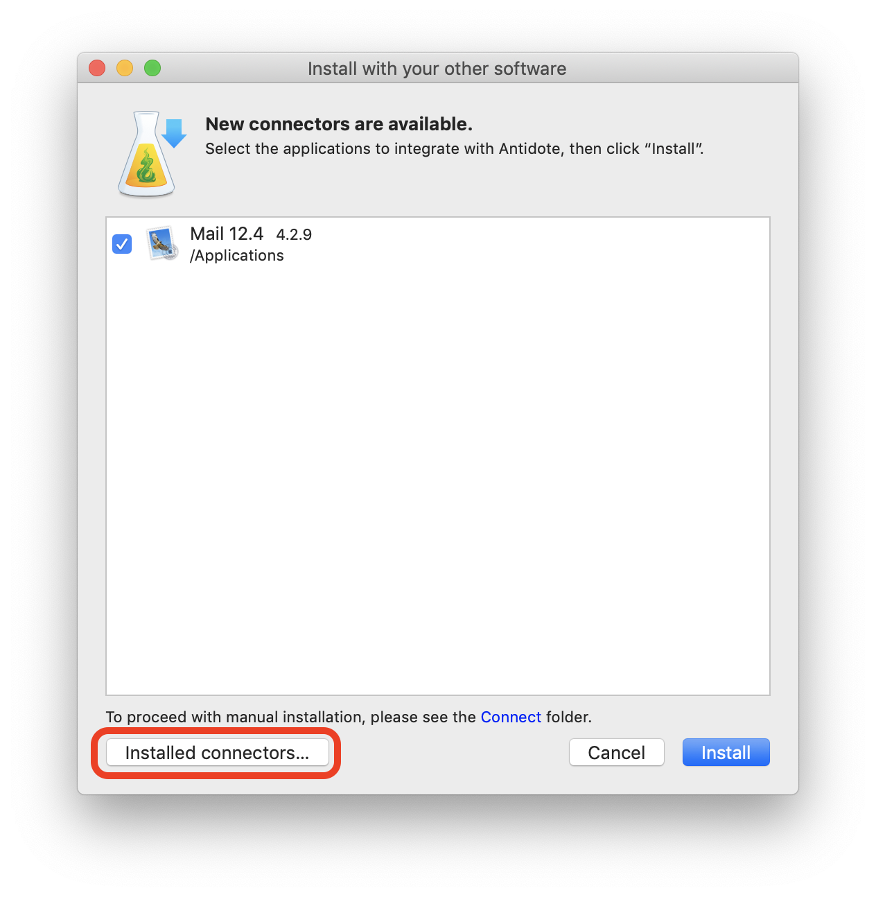 - Launch Connectix, available from Antidote’s Help menu > Install with your other software...