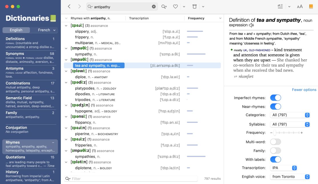 Wordplay makes for a winning headline. The Guardian is well known for this trick, with headlines like Tea and antipathy or X marks the despot. Antidote’s dictionary of rhymes can help you find the perfect word to craft your catchy title. Far from a conventional resource, it lets you find rhymes or near-rhymes, as well as words that have the same number of syllables or that belong to the same category, among other criteria. Throw rhythm into your writing by counting syllables, or make it tickle the ear with some convincing consonance.