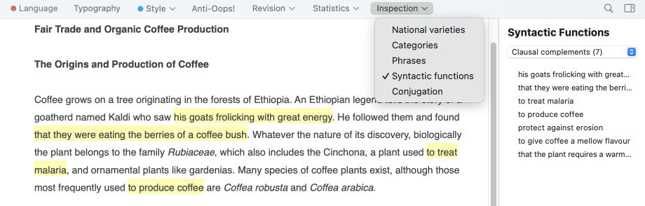 The one hundred or so filters of the Inspection view dissect the basic elements of your text, allowing you to examine it in depth.