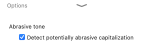 - Passages with potentially abrasive capitalization that also contain abrasive content are always flagged, whether or not this setting is enabled.