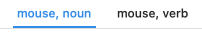 When the headword has homographs (words with the same spelling, such as the verb drink and the noun drink), they are displayed in the homographs bar above the header for all the dictionaries. By default, Antidote chooses the most likely homograph according to its frequency and the current dictionary. Click another word in the homographs bar at any time to display an alternative entry.