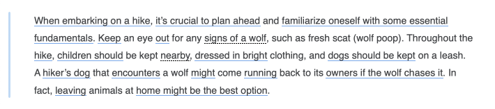 Any text segments changed by a reformulation you chose to apply will be underlined in blue, and those you chose to ignore will be marked by a black dotted line.