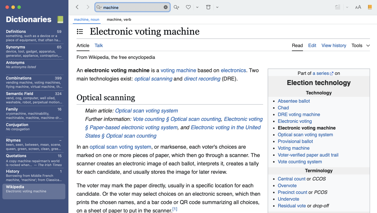 Consulting Wikipedia for information on a word not recognized by Antidote