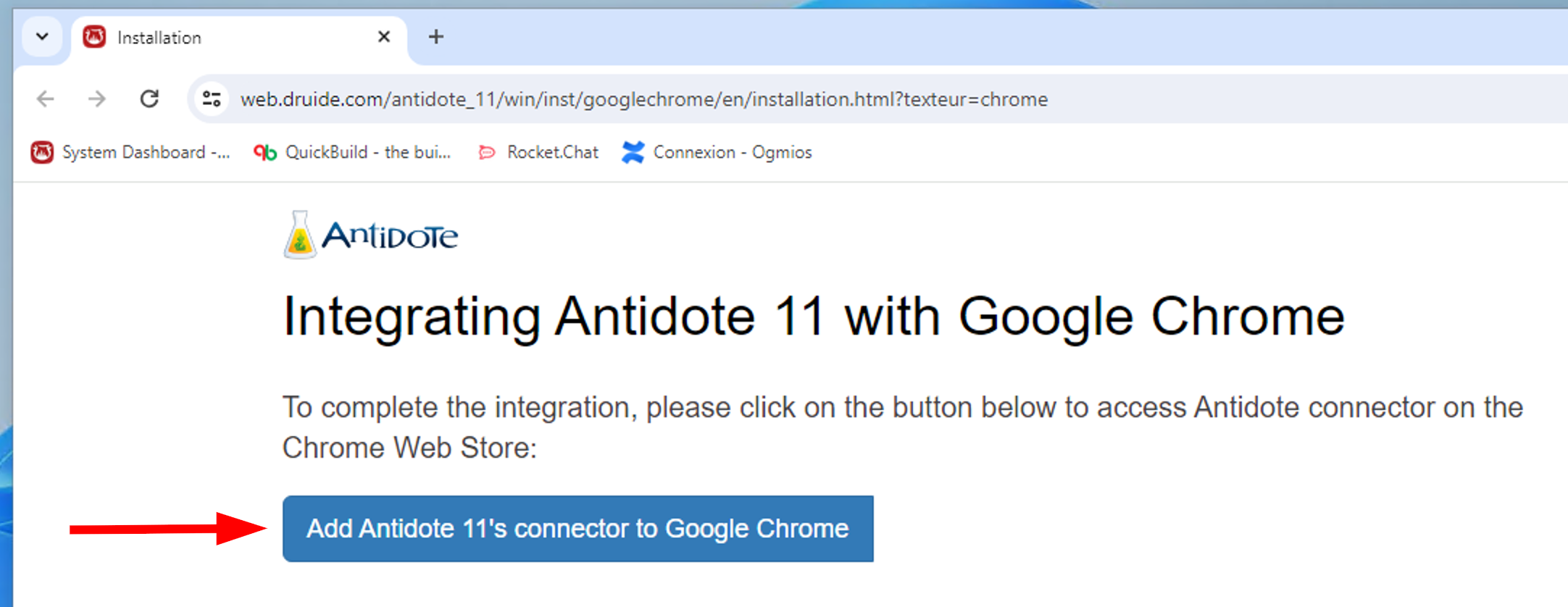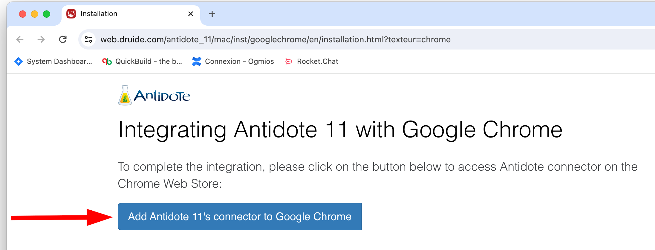 - A browser window will open. Click Add Antidote 11’s connector to Google Chrome.