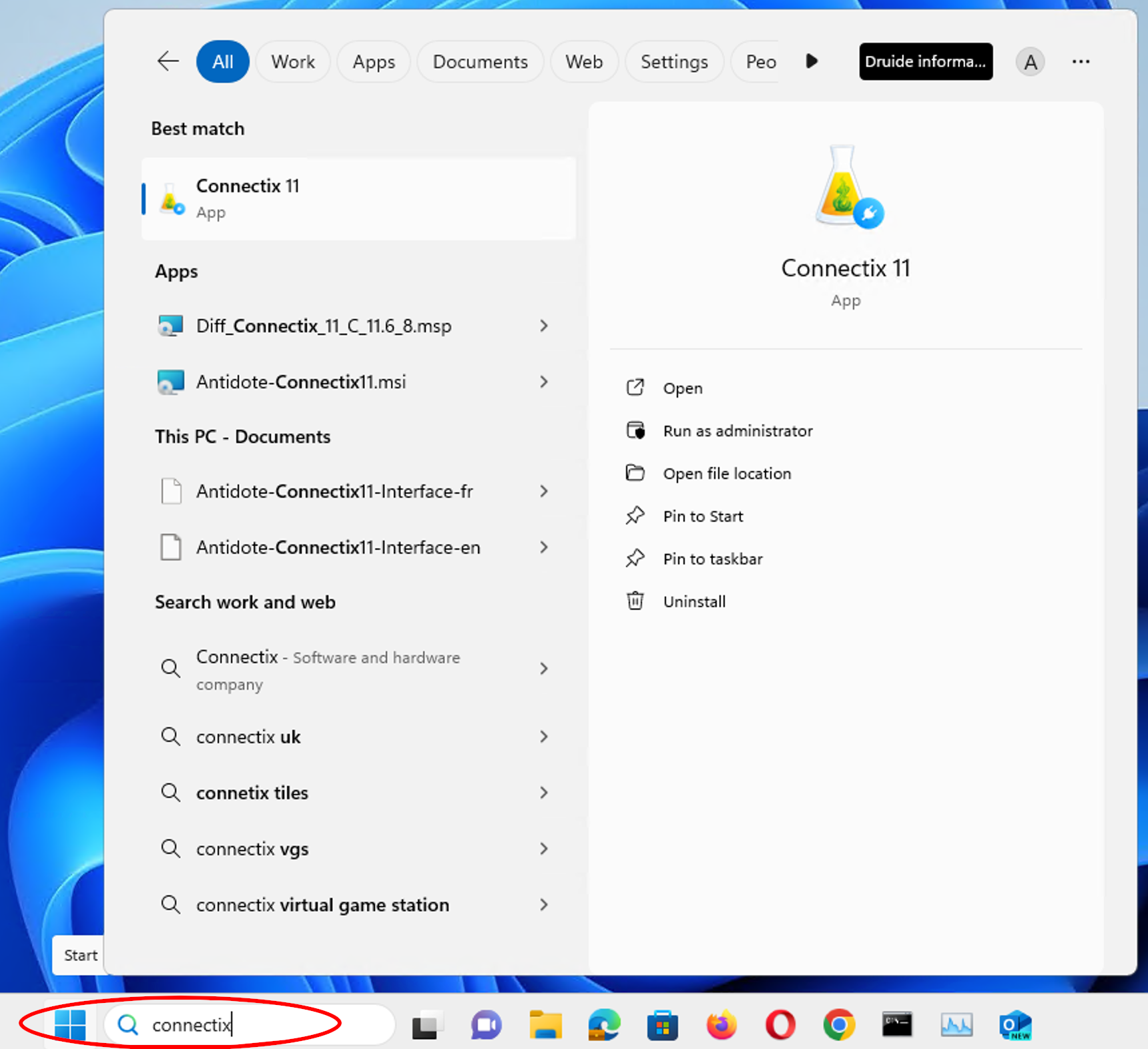 - First make sure that your browser is closed, then launch Connectix from the search bar.