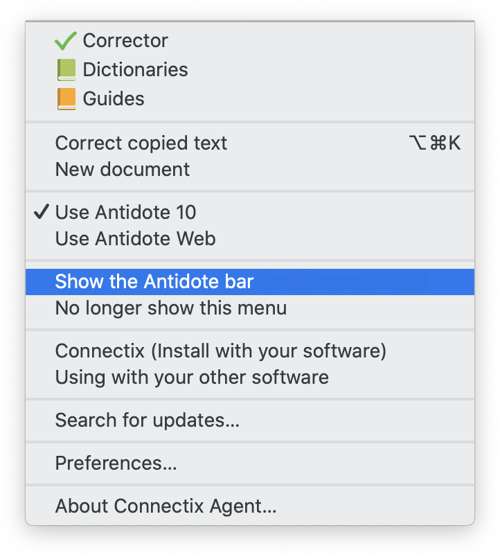 - Open the Antidote Agent (Antidote icon in the menu bar).