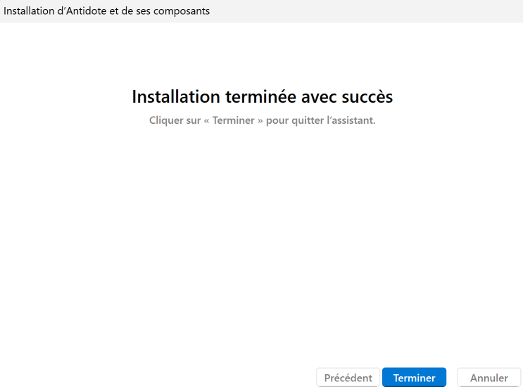 Une fois l’installation terminée, cliquez sur Terminer.