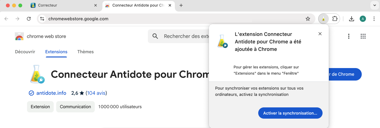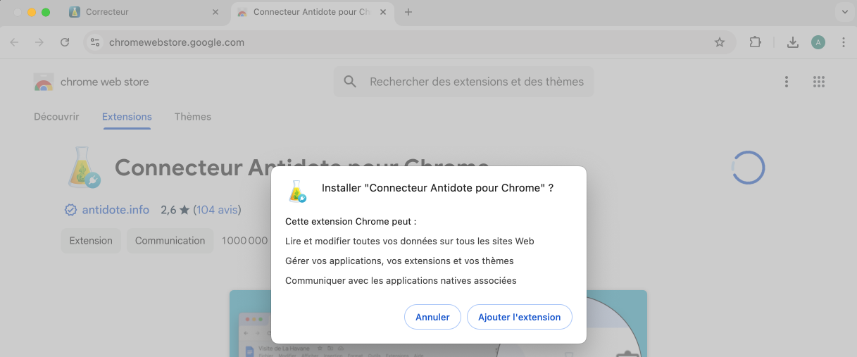 Ajouter le Connecteur Antidote à Chrome