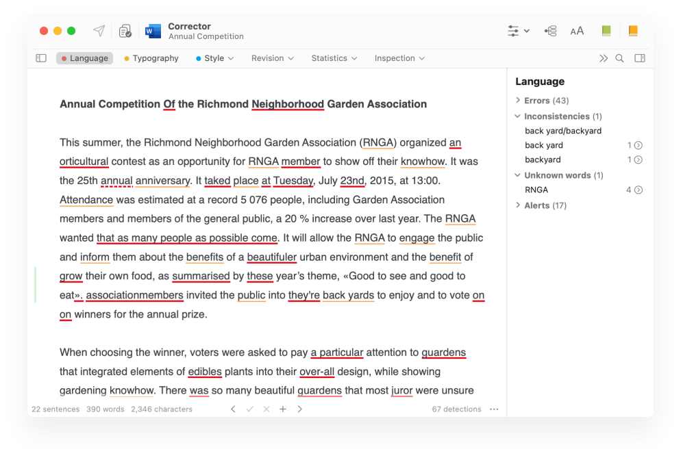 - Language, typography and style corrector