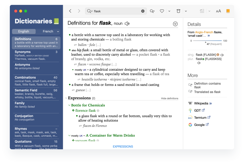 - Smart links to Termium and Web search engines