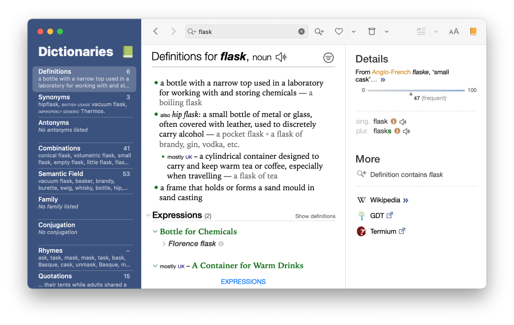 - Detailed entries for expressions, idioms, phrasal verbs and proverbs