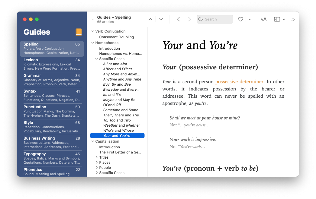 - Confused words: there/their/they’re, its/it’s, whose/who’s, etc.