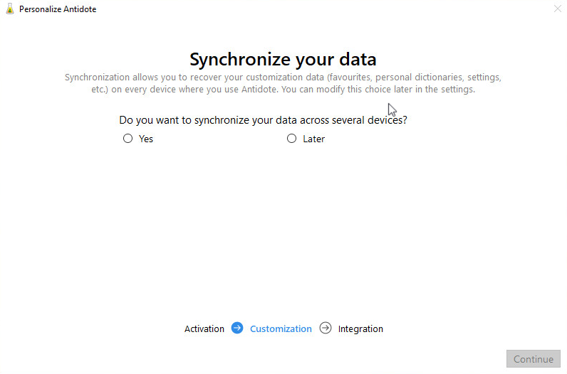 10 — Antidote now guides you through the last three steps: activation, customization and integration.