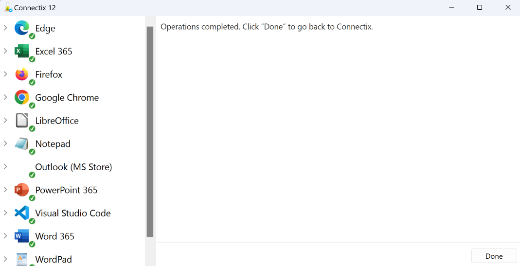- Connectix can open software, such as browsers, to activate connectors. In that case, follow the instructions in the new window.