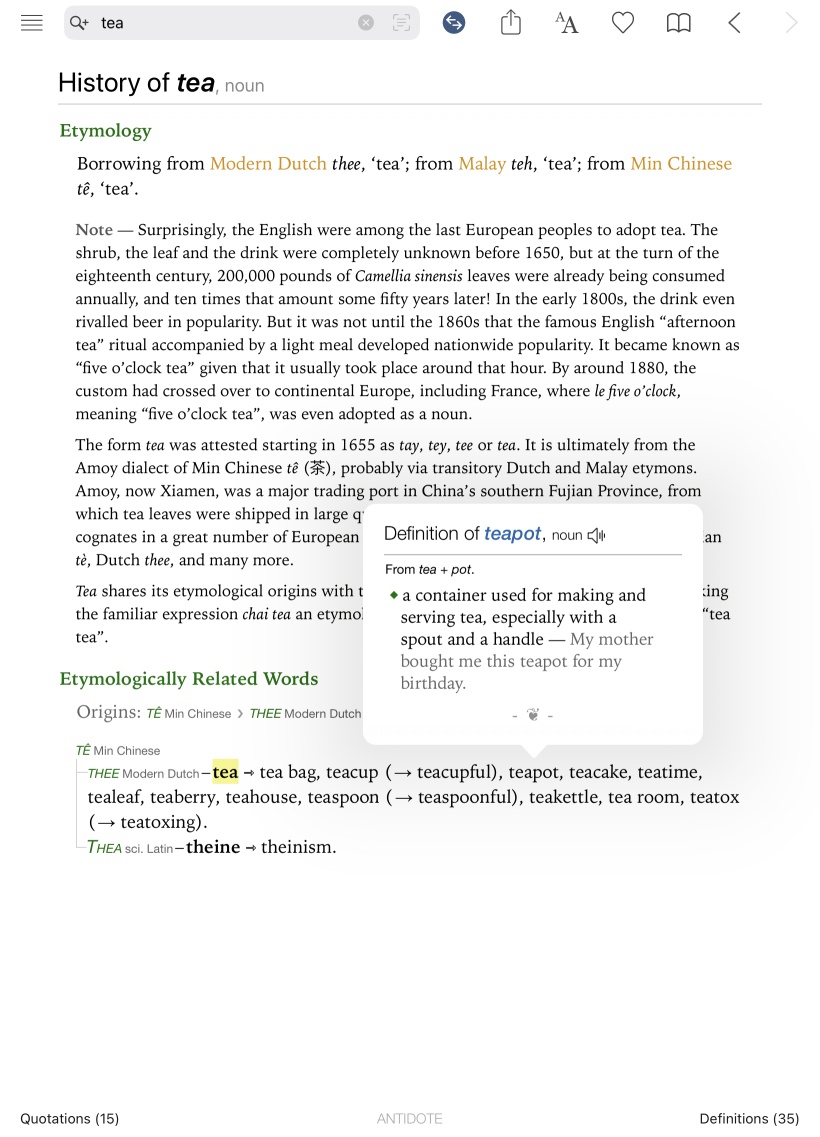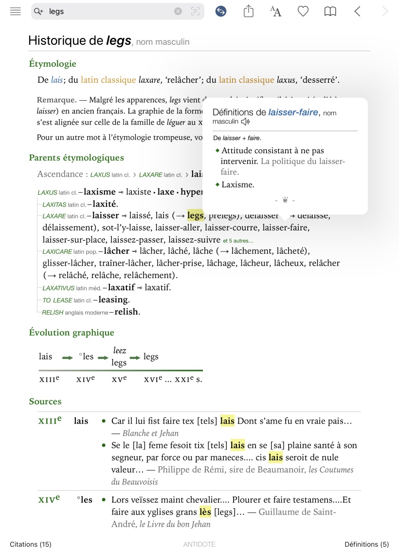 The historical dictionary gives a detailed etymology of the headword, accompanied by explanatory comments in many cases. This dictionary also gives etymologically related words, as well as the evolution of its spelling, supported by historical sources.