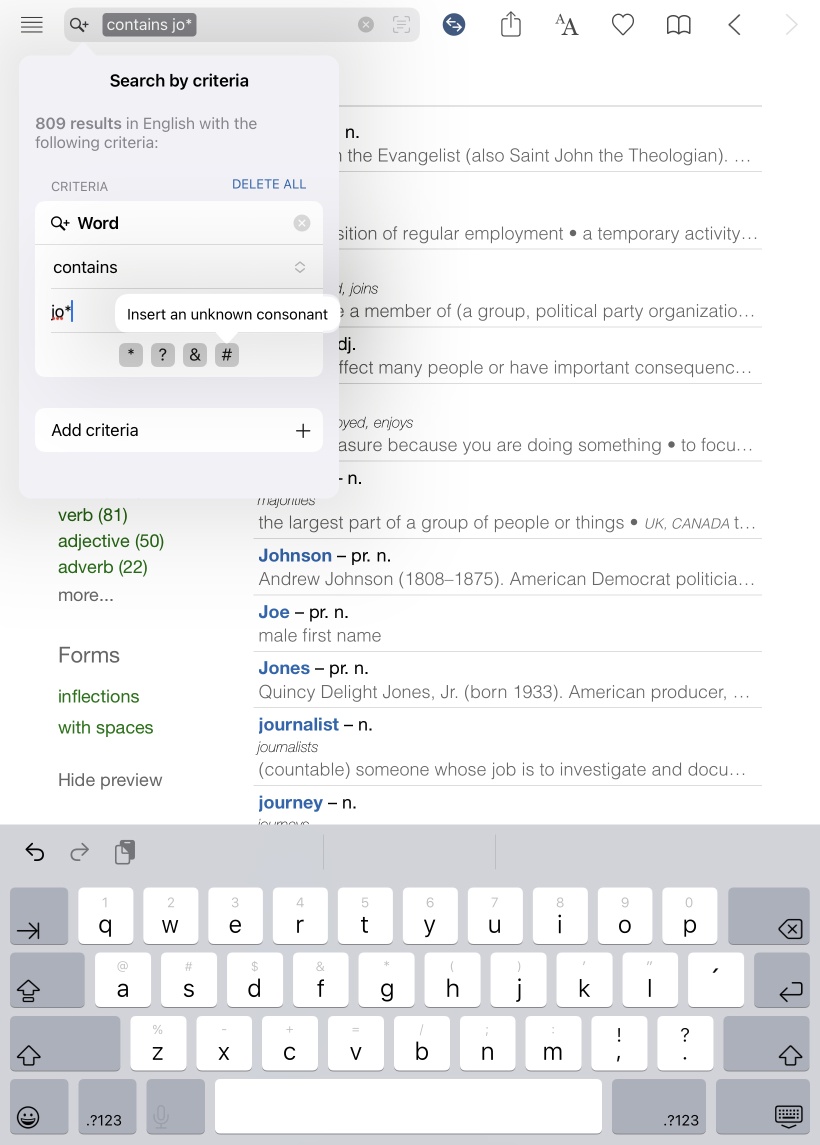Sometimes it can be useful to search for a word without knowing all the letters. For example, to complete a crossword or find all the words containing a sequence of letters. Here are the four characters to use as variables.