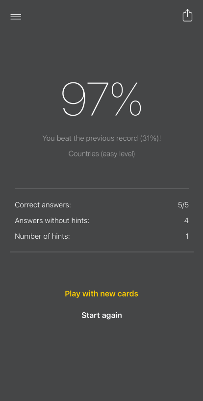 View the table showing your records according to the word category and level of difficulty. Reset all records or share your records with your friends.