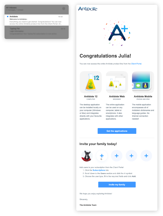 1. Open the email you received from Antidote titled Welcome to Antidote+.