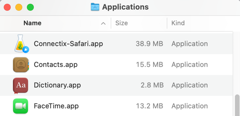 In the window that appears, drag the Connectix-Safari.app icon onto the Applications folder.