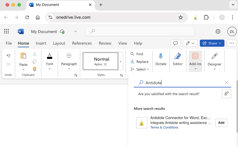 If you haven’t already done so, add the Antidote Connector for Word, Excel, PowerPoint and OneNote.
