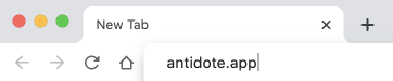 Open a browser window and go to antidote.app. Make sure to add this address to your favourites for next time!