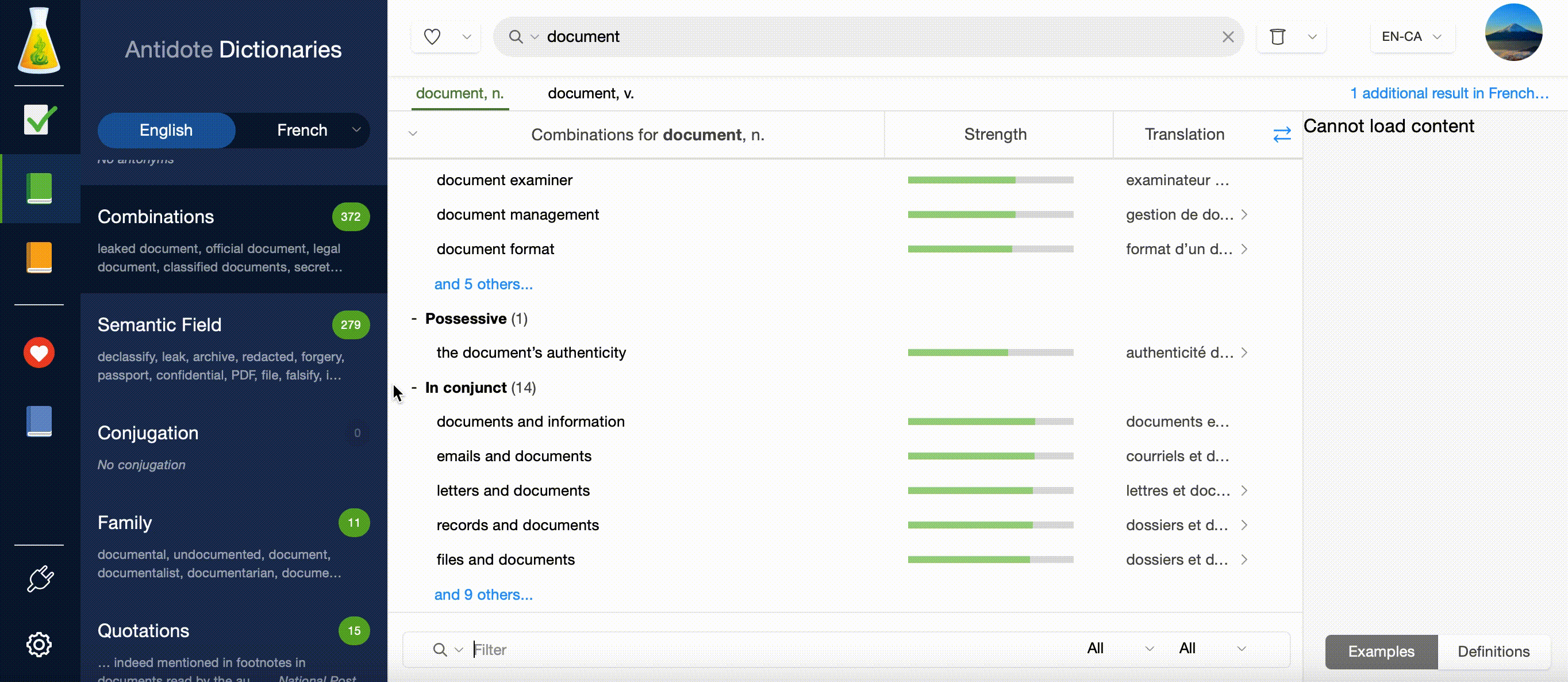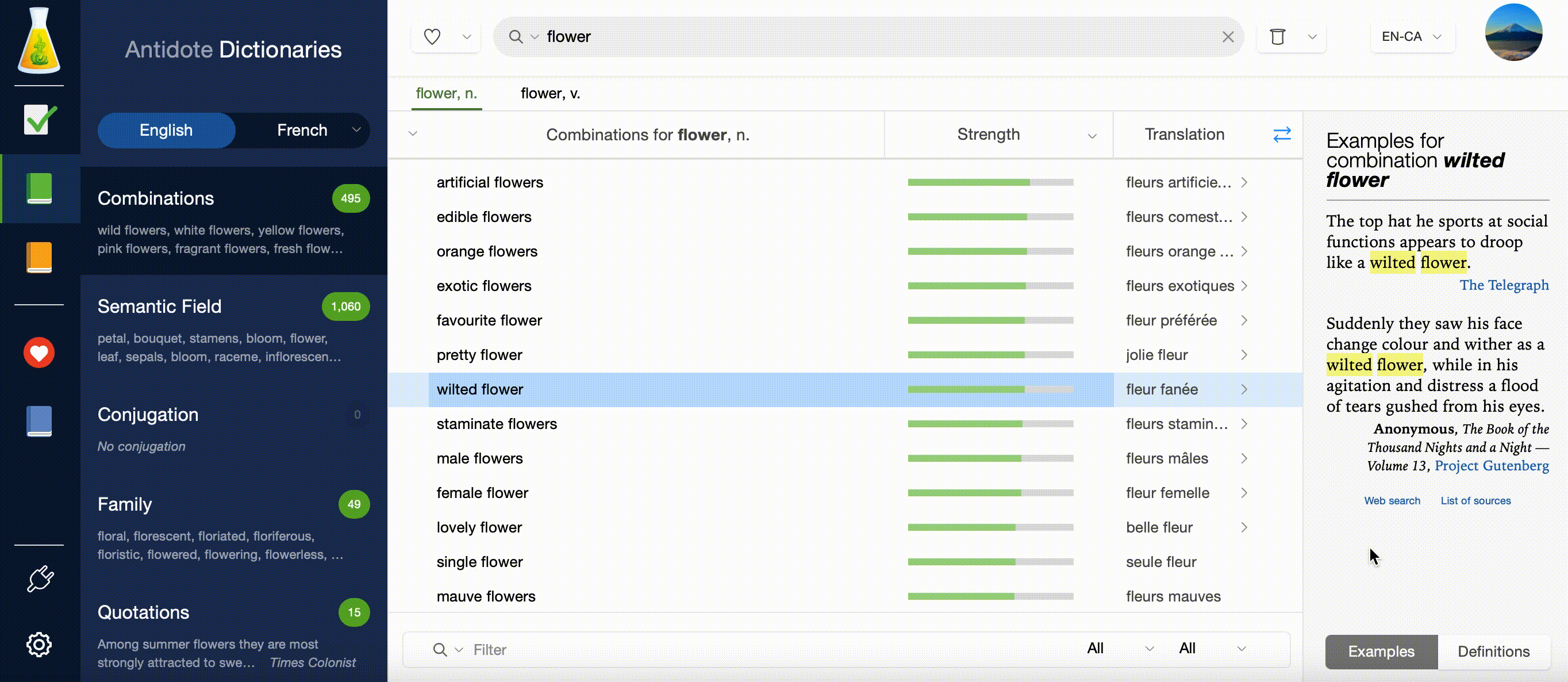 All in all, you’ll soon find the dictionary of combinations to be an essential tool—whether you’re looking for the perfect adjective, the appropriate verb or the most evocative adverb for your text. Check out the Antidote User Guide for all the details.