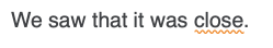 | Wavy orange underlining | Several possible spellings to check | |