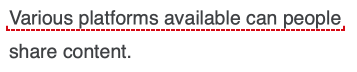 | Dotted red underlining | Error to correct manually or using reformulation | |