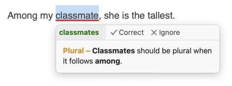 With a subscription, the corrector also includes the Reformulate command for certain types of errors, such as redundancies. Click it to see rewriting suggestions.