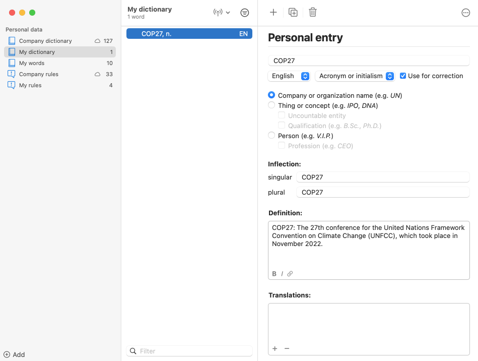 There are a lot of advantages to adding words like proper nouns or acronyms to your personal dictionaries. Here are three: