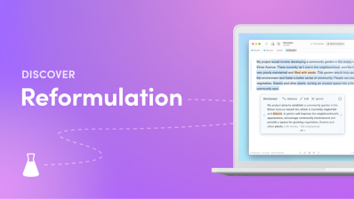 Reformulation mode intelligently reworks your writing while remaining true to your ideas. Need to shorten a text, soften its tone or touch it up a bit? Just choose the reformulation type that best suits your needs: Rewrite, Retouch, Soften or Shorten.