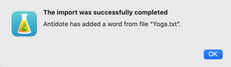 You can also import a file exported from Antidote previously, allowing you to easily merge two personal dictionaries, for example.