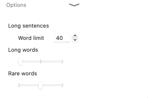 A slider in the options panel lets you choose whether to flag all long words or those of varying degrees of significance, depending on their frequency and number of syllables.