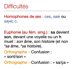 - An explanation of any linguistic difficulties (grammar, spelling, syntax or other) related to the use of the headword.