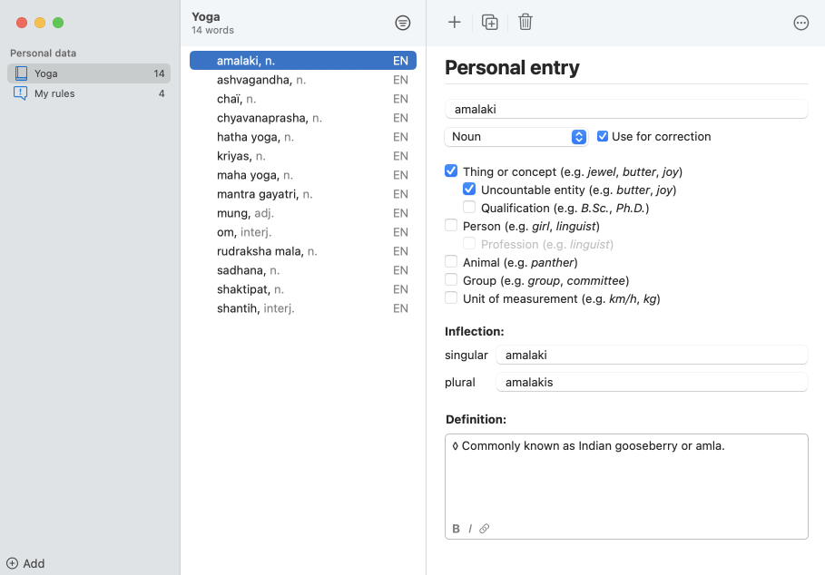 - You can also use the keyboard shortcuts ⌘ + U on a Mac and Ctrl + U in Windows to display your personal dictionaries and custom rules.