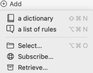 - You can also click on the sharing menu ( icon) located below the list of words or rules in the windows’s central panel.