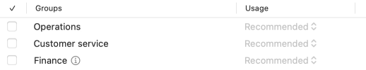 To see the members of groups with access to your customizations and to make any changes, click the button that displays to the right of each group when you hover your mouse. This is a link to your organization’s Client Portal.