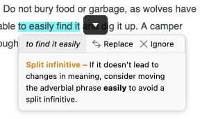 • Each tooltip has a link to a guide article corresponding to the detection. There you’ll find the reasoning behind the detection and can take inspiration from the rephrasing examples presented.