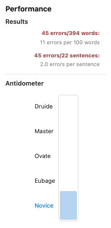 This filter provides information on the number of errors detected per hundred words and the number of errors detected per sentence.