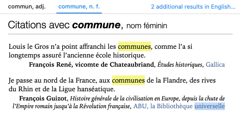 Remember: a summary of the word’s etymology appears in the Précisions panel in the definitions dictionary, where clicking the   icon lets you access the historical dictionary.
