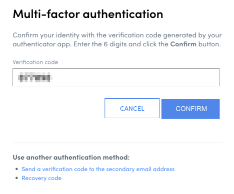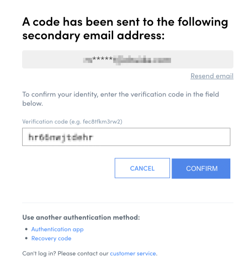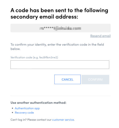If you use an authentication app and there is a problem with your recovery codes, or if you don’t have any, you can request a verification code if you have set up a secondary email address.