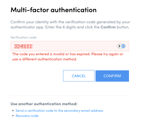 If you are having trouble with MFA, use one of your recovery codes to log in.