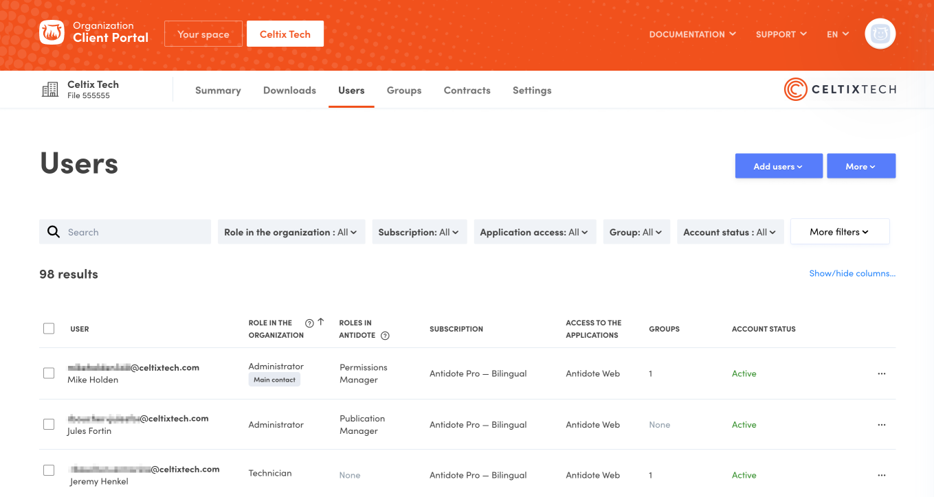 - The three roles in Antidote (Exam Monitor, Permissions Manager, Publication Manager)