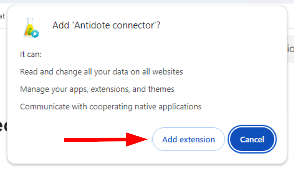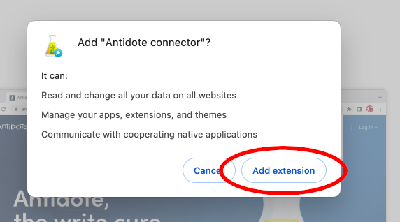 - A browser window will open. Click Add Antidote 11’s connector to Google Chrome.