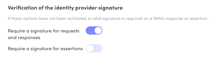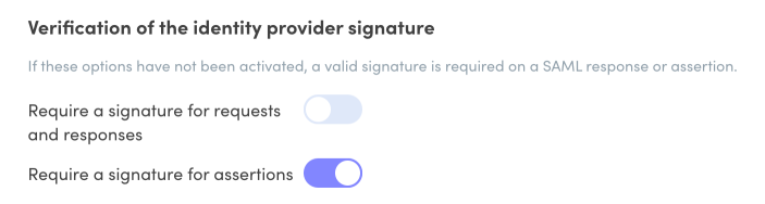 Important — The signature verification settings here must match those defined in Google Cloud or SAML authentication will fail.