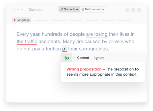 Antidote’s corrector takes a giant leap forward with neural correction. It detects twice as many errors, with greater accuracy. It also identifies opportunities for improving your writing and resolves structural issues with options for rephrasing.