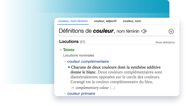 The dictionary of definitions contains over 2.7 million translations covering every word, expression and proverb. In an unprecedented feat, 1⁠.⁠9 million word combinations have been translated from French to English and from English to French.