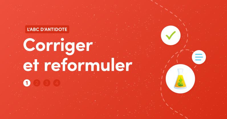 Corriger et reformulerDécouvrez comment Antidote vous emmène au-delà de la correction des fautes. Dans cet article, vous apprendrez à bien utiliser le correcteur pour réviser vos textes et reformuler des phrases au besoin. |